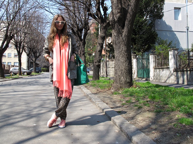 As i promised , here is my outfit from Friday, i wore one of my favorite pants, with new neon pashmina scarf and sneakers from H&M. How do you like it?